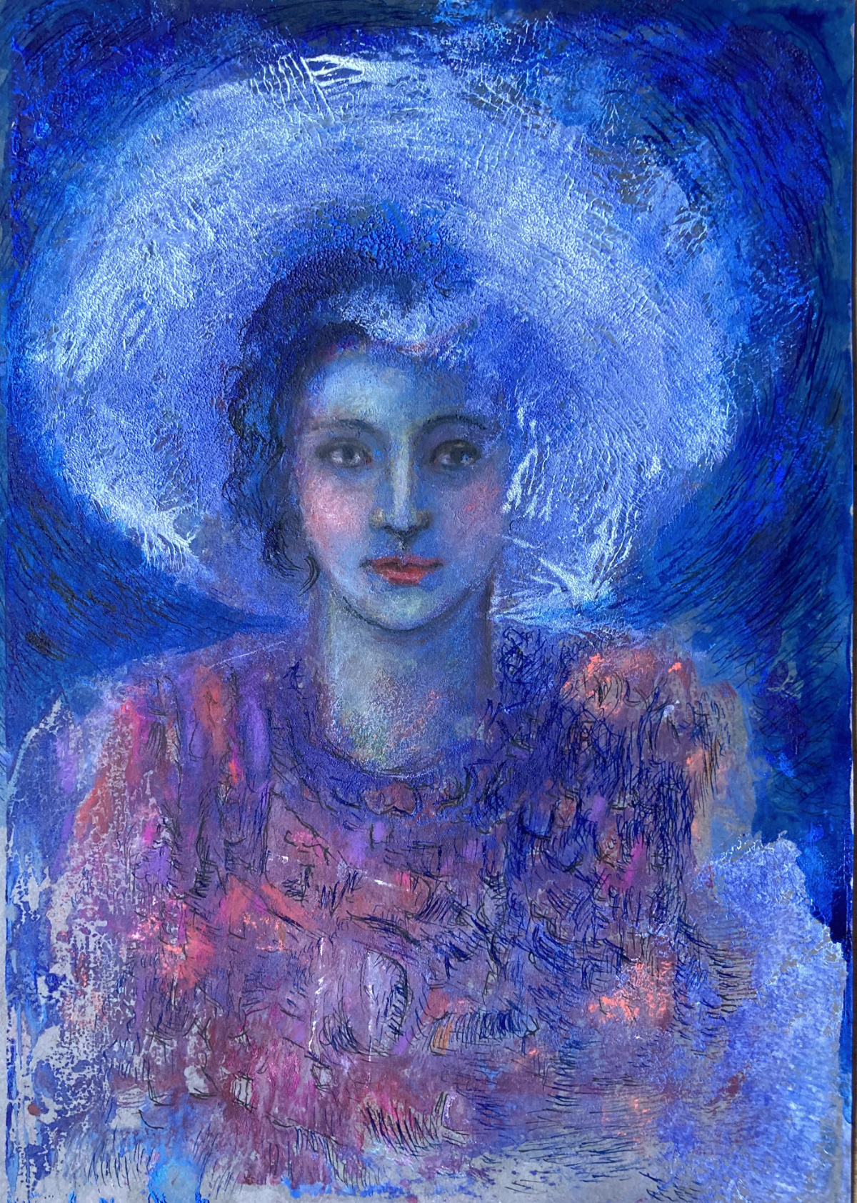 NimbusWolke, 2025, Mischtechnik (Monotypie, Tusche, Buntstift, Pastell)auf Papier, 21 x 29,7 cm